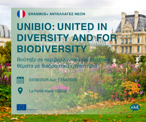 Η ELIX συμμετέχει ως εταίρος στο ευρωπαϊκό πρόγραμμα ανταλλαγής νέων “UniBio: United in Diversity and for Biodiversity”, το οποίο υλοποιείται στο πλαίσιο του Erasmus+ από τον οργανισμό Vir’Volt στη La Ferté-Alais, Γαλλία.