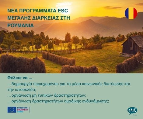 Μάθετε για νέα μακρoχρόνια προγράμματα αλληλεγγύης European Solidarity Corps (ESC): Εδώ μπορείτε να βρείτε τρεις ευκαιρίες για εθελοντικά προγράμματα στην Ρουμανία.