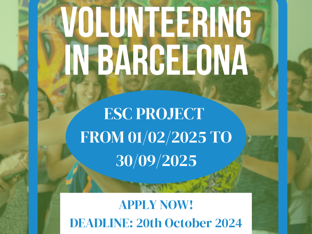 H ΕΛΙΞ προτείνει 2 εθελοντικές θέσεις ESC με έδρα την καταπληκτική Βαρκελώνη, σε συνεργασία με την ισπανική οργάνωση COCAT. Αν θέλεις να προσφέρεις στον τομέα της νεολαίας, να αναπτύξεις νέες δεξιότητες και να γίνεις μέρος της διεθνούς κοινότητας εθελοντών, αυτές οι θέσεις είναι για εσένα!