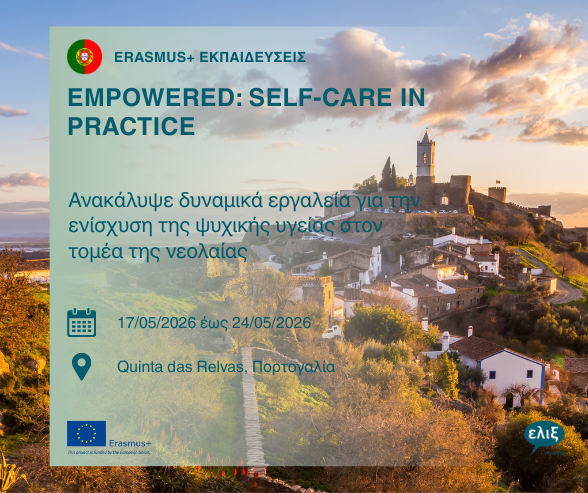 Η ΕΛΙΞ συμμετέχει ως εταίρος στο ευρωπαϊκό σεμινάριο κατάρτισης “EmpowerED: Self-Care in Practice”, που υλοποιείται στο πλαίσιο του Erasmus+ από την οργάνωση ΑΝΚ - Association of Estonian Open Youth Centers στην Πορτογαλία!