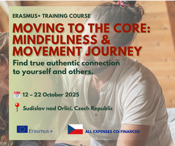 Η ΕΛΙΞ συμμετέχει ως εταίρος στο ευρωπαϊκό εκπαιδευτικό σεμινάριο “Moving to the Core: Mindfulness and movement journey to authentic connections with self and others”, το οποίο υλοποιείται στο πλαίσιο του Erasmus+ από τον οργανισμό Mindful.nest CZ. Το πρόγραμμα θα φέρει κοντά ανθρώπους από τον χώρο της κοινωνικής εργασίας για να ανακαλύψουν μια αυθεντική σύνδεση με τον εαυτό τους και τους άλλους.